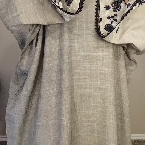 2 Piece Oversized Embroidery Linen Dubai Abaya
