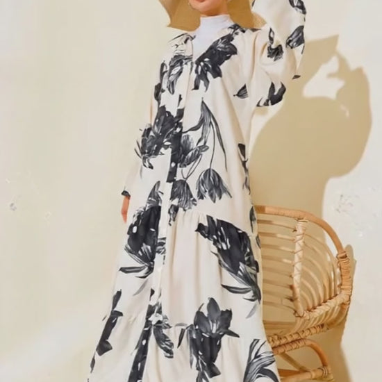 The arm cuffs are elastic and unlined. It has a mobile belt around the waist. It is a summer hijab dress model.