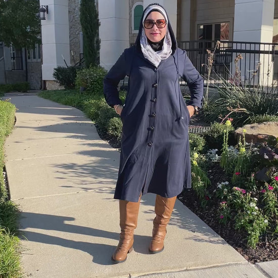 Modest Fashion, Turkish Long Sleeve Buttoned Overcoat – Navy Blue