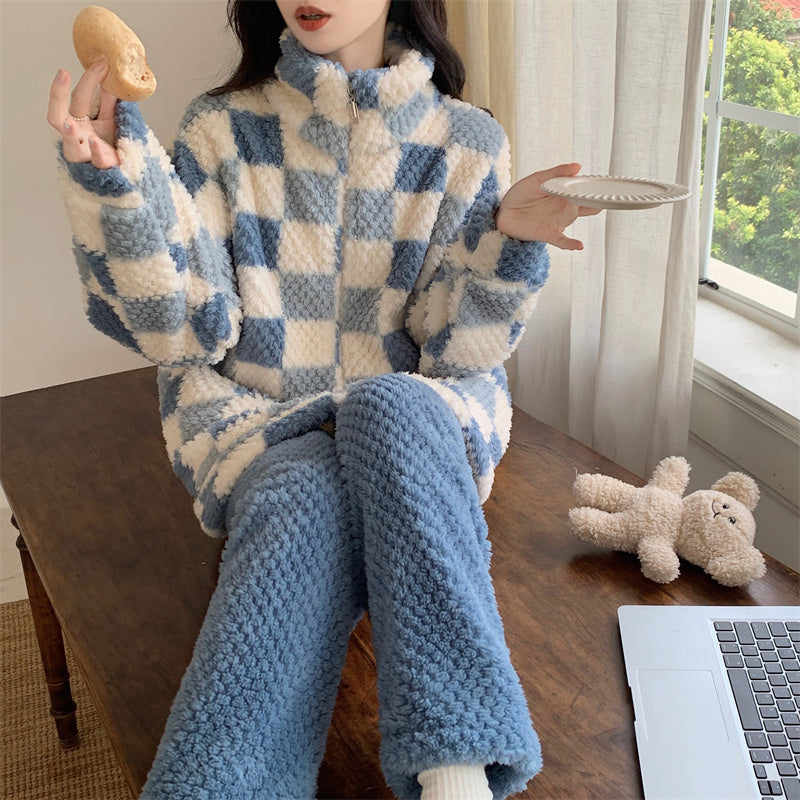 Winter pajama set for women winter sleepwear for girls Blue